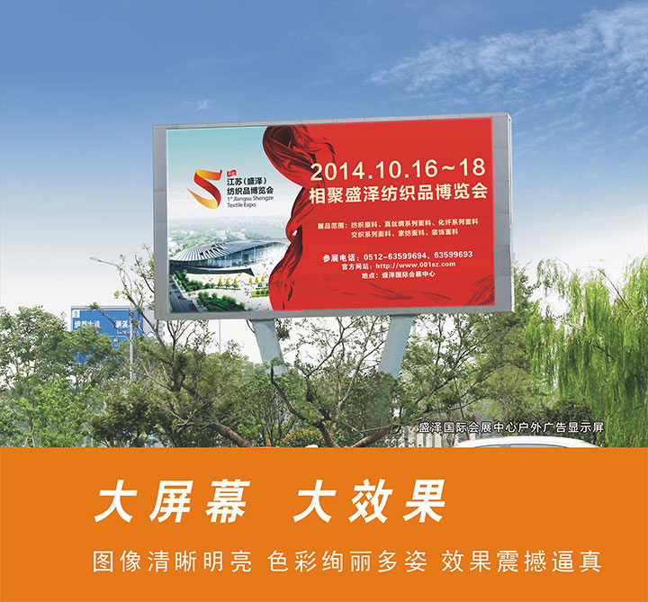 LED高清全彩顯示屏在戶外廣告中起到巨大的作用。戶外LED顯示屏打破了常規噴繪廣告的靜態束縛,可播放無限的信息,給人不一樣的視覺感官體驗,能更好地吸引人的眼球。LED高清全彩顯示屏廣告畫面面積大,視覺效果震撼,圖像色彩清晰絢麗,是媒體與高科技的全新結合。這些改變鑄就了戶外媒體獨特而無可替代的價值。